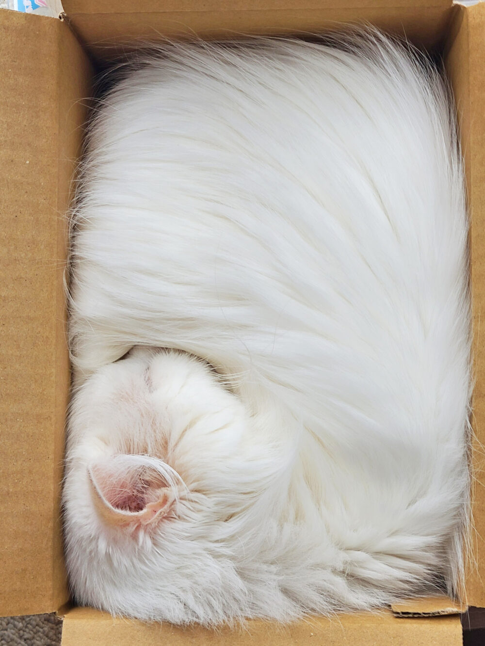 自宅でゆっくりしていたので、猫の写真を撮って遊んでいました。あきらかに自分サイズより小さいのにぎゅむっと入るのがお気に入りみたいです。